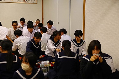 みんなで夕食を食べました。朝が早かったのと、かなりの距離を歩いたので、お腹も空いていたことでしょう。ご飯のおかわりも進み、よく食べていました。おいしいご飯が食べられることに感謝です。会話も弾んでいました。ごちそうさまでした。