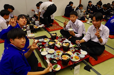 28日(木)の午後、1年生の学級で調理実習がありました。先日も、この話題については掲載しましたが、別の学級の様子です。今回も、日章学園高校調理科の先生や生徒さんに来校していただきました。生徒たちは先生方の説明を聞きながら、楽しそうに実習に取り組んでいました。プレーンオムレツ、なかなかの出来映えでした。ご指導いただいた高校の先生方、ありがとうございました。
