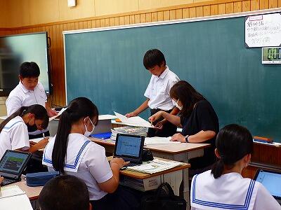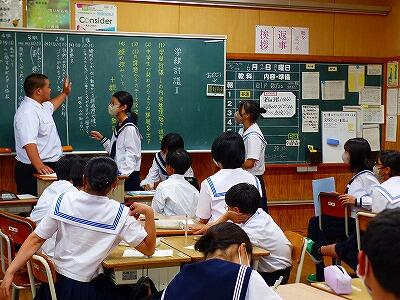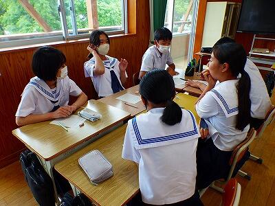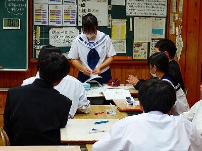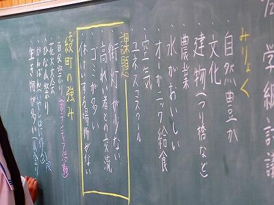 2日(月)の午後、生徒総会に向けて、全学級で学級討議が行われました。今回のテーマは、綾町の魅力や課題を見つけ、中学生が関われる形で活用できる具体策を考えることです。黒板には班ごとの意見が丁寧に整理され、「自然を生かしたポスターづくり」や「有機農業を生かした地域PR」など、地域資源に目を向けた具体的な提案が並びました。身近な魅力を再発見し、課題に向き合う力を育む貴重な時間となりました。また、1年生の学級には、3年生の生徒会役員が入ってアドバイスをしていました。今後の取組への展開が楽しみです。