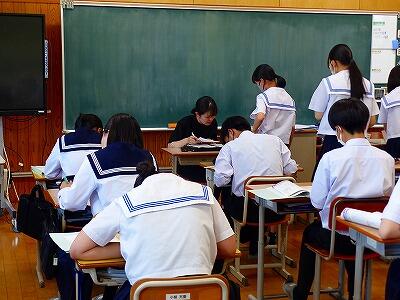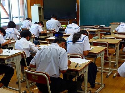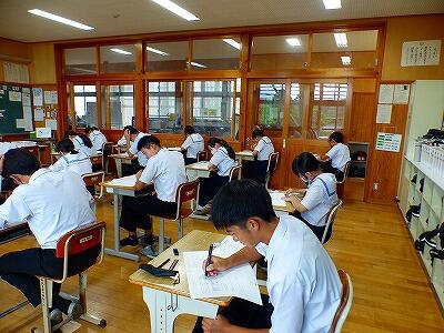 3年生にとって、第1回目となる地区実力テストが17日(火)から始まりました。地区中体連の大会も終え、ひとまず大きな区切りを迎えたところです。初日の試験には、集中力が感じられ必死に問題を解く姿が印象的でした。テストは18日(水)までです。頑張ってほしいと思います。