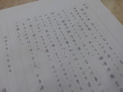 1学期終業の日まで、残り1日となりました。プールでは、3年生が気持ちよさそうに泳ぐ姿が印象的でした。1年生の教室では、習字に取り組んでいました。手本をしっかりと見ながら集中して書いていました。18日(金)の1学期最後の日まで、真剣に取り組んでくれるものと思います。