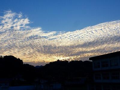5日(木)、梅雨の合間に広がった青空の下、夕暮れ時の空が美しい姿を見せてくれました。うろこ雲が西の空いっぱいに広がり、夕日に照らされて黄金色に輝く光景は、まるで自然が描いた一枚の絵のようでした。しとしと雨の多い季節ですが、ふと訪れる晴れ間には、こんな心洗われる瞬間が待っているのだと感じました。これも綾の良さかなと思います。日々の学校生活の中で、自然の美しさに気づける時間も、大切にしていきたいものです。
