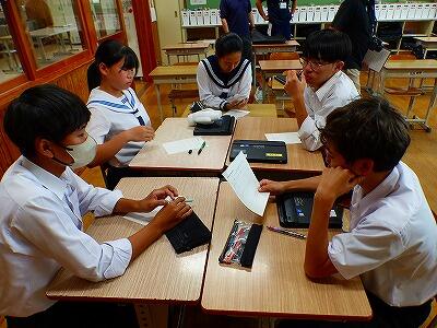 30日(月)の午前中、「English Day」と題して、宮崎国際大学の留学生との交流会を開きました。各学年ごとに、好きなスポーツや食べ物などを英語で伝え合ったり、綾の町の魅力を紹介したりして、笑顔あふれるひとときを過ごしました。インド、バングラデシュ、スリランカ、ナイジェリア、カザフスタンなど、さまざまな国から来た留学生との会話を通して、生徒たちは英語でのコミュニケーションに少しずつ慣れ、自信を深めています。この取組は昨年度から継続しており、国際理解と英語力の向上をめざす貴重な学びの場となっています。国際大学の留学生の皆様、ありがとうございました。これを機に、綾の町を好きになってもらえたら嬉しいです。いつでも綾町にお越しください。
