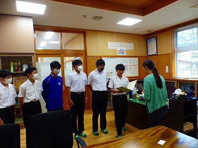 本校の部活動、社会体育競技等へのご指導をしていただいている、外部指導者の方々への委嘱状交付式を24日(水)の放課後に行いました。本年度は、9名の方々に外部指導者としてお願いしています。お仕事が終わってからの日々のご指導、また、休日における各種大会への引率やご指導など、子どもたちのためにお力添えをいただいています。部活動等を通して子どもたちの健やかな成長のためにご尽力いただいていることに、改めて感謝申し上げます。いつもありがとうございます。