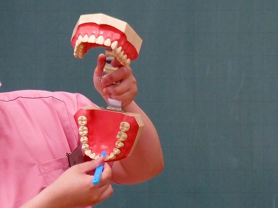 4日(火)の給食終了後、学校医の先生や、歯科衛生士の皆様に来校していただき、1年生を対象にブラッシング指導を行っていただきました。歯の模型を使い、どのように歯磨きをすれば効果的なのかを、丁寧にご指導いただきました。6月4日~10日は、国が定めた「歯と口の健康週間」です。ここで学んだ知識や技術をもとに、これからの歯磨きに生かし、いつまでも丈夫な歯を残してほしいと思います。ご指導をいただいた皆様、ありがとうございました。