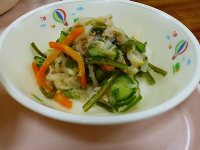 15日(水)の給食は、「ひむかの日」献立でした。メニューは、麦ご飯、千切り大根のみそ汁、チキン南蛮、きゅうりの塩もみです。宮崎産のもも肉、綾町産のきゅうり、人参、大根などの野菜を使って作られています。午前中は、体育大会の予行練習が行われ、さぞかしお腹もすいていたことと思います。おいしくいただきました。調理員さんをはじめ、給食に関わっていただいているすべての皆様に感謝申し上げます。ありがとうございます。