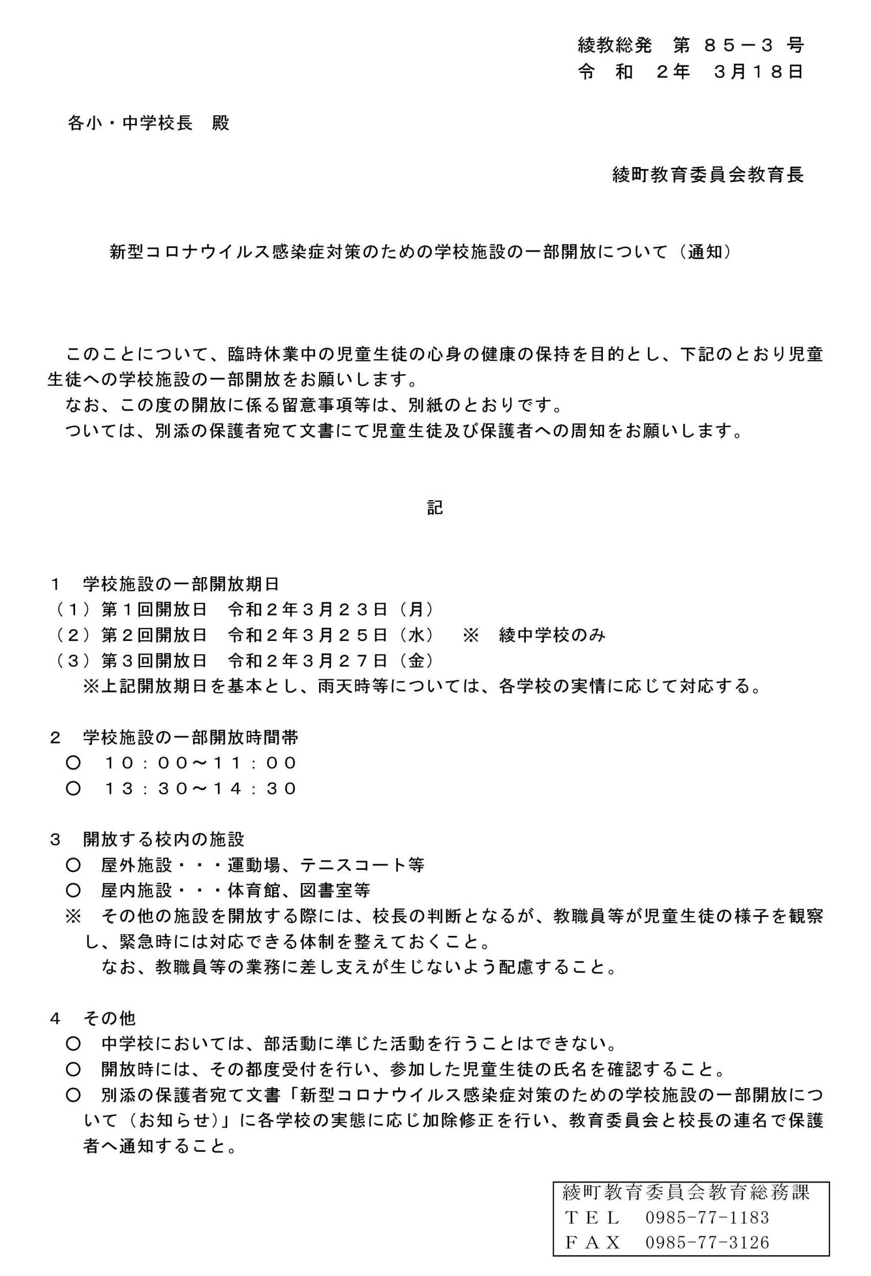 ※詳細(原文)はこちらをご覧ください。→R02_0311_町教委文書(通知).jpg