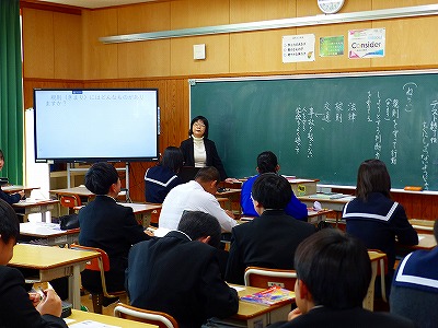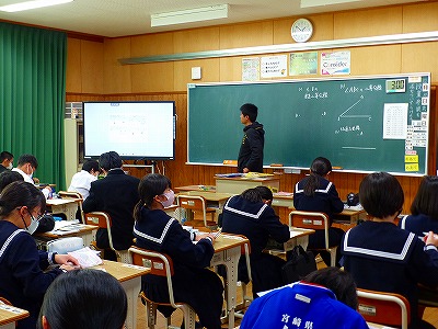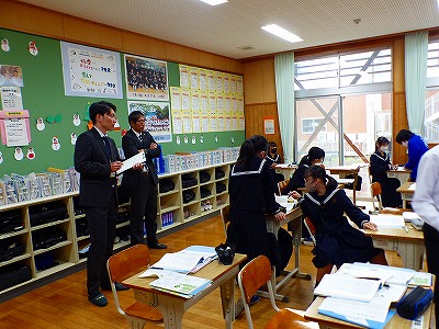 26日(火)、熊本県の高森町から2名の先生方が来校されました。綾町はこれまでに高森町の学校に行って授業づくりなどを学んでいます。本校の授業の一部ではありますが、参観していただきました。生徒たちは、いつものように元気よく授業に取り組んでいました。12月には綾町から高森町の学校に研修に伺う予定になっています。高森町の先生方、来校ありがとうございました。