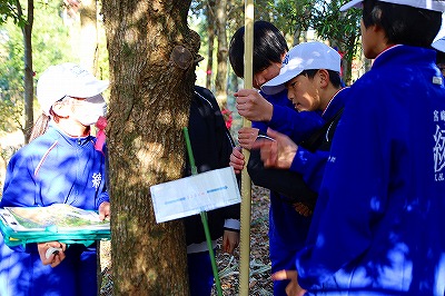 13日(金)の午前中、1年生がイオンの森調査活動を行いました。事前にイオン環境財団や綾ユネスコエコパークセンターの方々から樹高や幹回りの測り方などを教えていただいています。当日も、現地でのご指導をしていただきました。生徒たちは各班に分かれての活動でしたが、それぞれの役割に応じて協力しながら調査を行っていました。調査後は、タブレット端末に入っているアプリを使い、植物などの名前を探すことも体験しました。天気にも恵まれ、大変有意義な調査活動ができました。ご指導ご協力いただいたすべての皆様に感謝申し上げます。ありがとうございました。