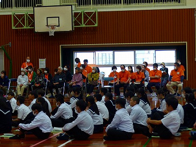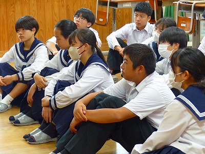 8日(金)の午後、1年生を対象とした「認知症サポーター養成講座」が開かれました。この講座は毎年実施しているもので、町や介護施設の方々から認知症の症状や患者の数などについて説明を受けました。また、実際に認知症の役を演じた方に対して、どう対応すればよいのかを体験しました。生徒は初めての体験のため、どう声かけすればよいのか、対応の仕方に戸惑う場面も多々見られました。今回の講座で学んだことを生かして、優しい気持ちをもって自分の家族に接するように地域の人たちとも接することのできる綾中生であってほしいと思います。関係機関の皆様方、ありがとうございました。なお、この講座の様子は、当日の夜のMRTニュースで放映されました。