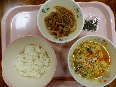 20日(木)の給食は、綾ぶたと厚揚げの炒め、白玉だんご汁でした。綾中の給食に使われている食材は、基本、綾町産です。綾ぶたは柔らかく、炒め物にもよく合います。食材を絶妙に調理し、最高の味付けをしていただいています。今日もおいしくいただきました。いつもありがとうございます。