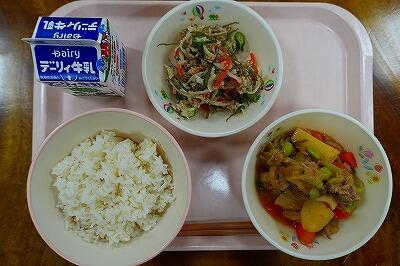 16日(金)の給食は、3年生のリクエスト献立でした。メニューは「麦ご飯、キムチーズ肉じゃが、千切大根の酢の物」です。生徒に人気のメニューは、キムチーズ肉じゃがです。肉じゃがにキムチとチーズが溶け込んでおり、なんとも言えないおいしさです。また、16日は「ひむかの日」でもあり、素材も綾町産がほとんどです。おいしくいただきました。給食に関わっていただいているすべての皆様に感謝します。いつもありがとうございます。