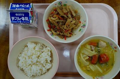 22日(木)の給食は、郷土料理給食でした。山梨県の「ほうとう」が出ました。「ほうとう」とは小麦粉を練り、平らに切った「ほうとうめん」を、たっぷりの具材とともに味噌仕立ての汁で煮こんだものです。寒い季節にぴったりです。おいしくいただきました。給食に関わっていただいている全ての皆様に感謝します。いつもありがとうございます。