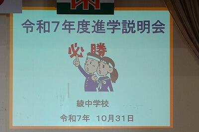 令和8年度入学予定者を対象とした新入生説明会を、12月15日(月)に行います。詳細については、資料をご確認ください。なお、綾小学校以外から転入予定の方は、綾中学校教頭まで連絡を頂けると助かります。