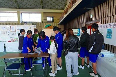 綾町文化祭と農業祭が開催され、本校の生徒たちが地域の一員として活躍しました。文化祭では、会場受付や後片付けのボランティアとして生徒が参加し、来場者を温かく迎えました。農業祭では、吹奏楽部の出演が雨天のため中止となりましたが、有機農業推進大会では本校生徒が司会を務め、落ち着いた進行で会場を盛り上げました。また、生徒たちの作品も花を添えました。地域行事を支える姿勢や人の役に立とうとする思いが随所に感じられた2日間でした。生徒たちはこの経験を通して、地域とのつながりの大切さを実感することができたことと思います。ありがとうございました。