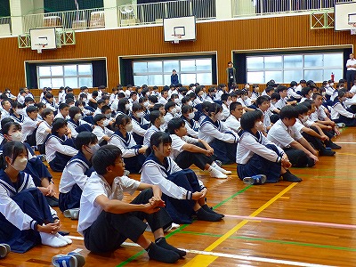 15日(火)の授業終了後に、中体連県大会及び宮崎地区駅伝大会の激励会を行いました。地区の激戦を勝ち抜き見事県大会への出場を果たした皆さん、そして学校代表として地区駅伝大会に出場する皆さんの健闘を祈ります。県大会が各会場で10月26日(土)から、駅伝大会が生目の杜運動公園で10月22日(火)に行われます。皆様のご声援をどうぞよろしくお願いいたします。
