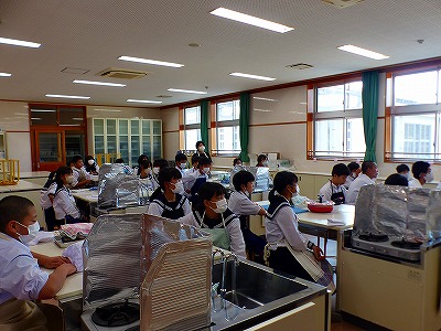 28日(木)の午後、1年生の学級で調理実習がありました。先日も、この話題については掲載しましたが、別の学級の様子です。今回も、日章学園高校調理科の先生や生徒さんに来校していただきました。生徒たちは先生方の説明を聞きながら、楽しそうに実習に取り組んでいました。プレーンオムレツ、なかなかの出来映えでした。ご指導いただいた高校の先生方、ありがとうございました。