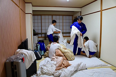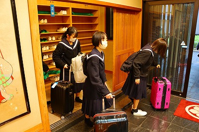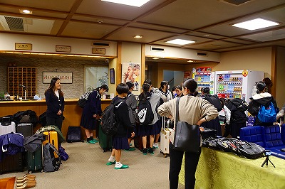 予定より1時間近く早く旅館に着きました。入館式を済ませ、夕食の準備中です。宮崎と比べ、日暮れの時間が早いです。外は全然寒くありません。体調不良の生徒もいなくて、順調です。夕食が楽しみです。
