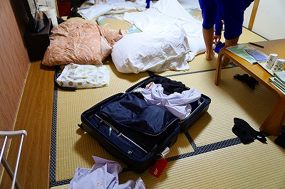 修学旅行も最終日を迎えました。生徒たちは、荷物の整理や部屋の片付けをしています。部屋によって、進み具合はまちまちです。すべて片付けが終わって、掃除をしている班もありました。京都市内、パラパラとした雨が降っています。思っていたほどは、寒くはありません。