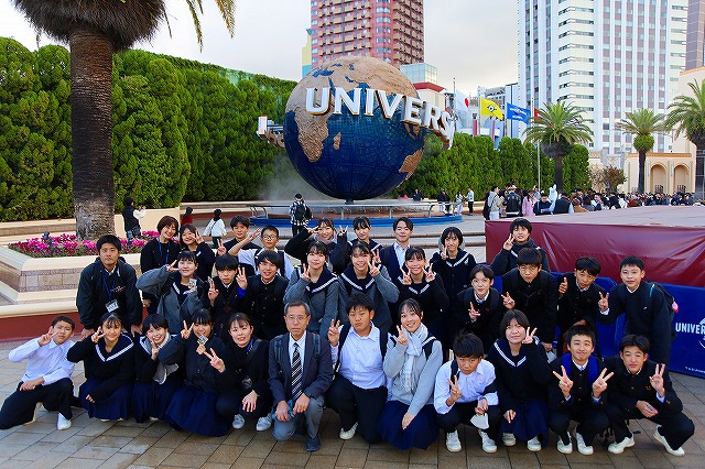 旅館を出発して、USJに向かっています。この旅行では、旅館スタッフの皆様に大変お世話になりました。ありがとうございました。バスの中では山手線ゲームをして楽しんでいる生徒もおり、USJに向けて気持ちを高めているかのようです。1時間後に、夢の時間に突入します。どんなワクワク、ドキドキが待っているのでしょうか。思う存分楽しんでほしいと思います。