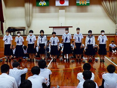 15日(火)の授業終了後に、中体連県大会及び宮崎地区駅伝大会の激励会を行いました。地区の激戦を勝ち抜き見事県大会への出場を果たした皆さん、そして学校代表として地区駅伝大会に出場する皆さんの健闘を祈ります。県大会が各会場で10月26日(土)から、駅伝大会が生目の杜運動公園で10月22日(火)に行われます。皆様のご声援をどうぞよろしくお願いいたします。