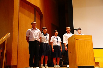 18日(金)の学習発表会終了後に、町文化ホールで生徒会役員退任式・認証式を行いました。まずは、旧役員の皆さんが一人ずつ挨拶しました。新役員から感謝の意味をこめて記念品が贈られました。最後に新役員の皆さんに認証状が授与されました。旧役員の皆さんは、学校のために大きく貢献しました。この貴重な経験が今後に生かされていくと思います。本当にありがとうございました。そして、新役員の皆さん、綾中学校の伝統を受け継いでもっともっと学校を盛り上げていってほしいと思います。よろしくお願いします。