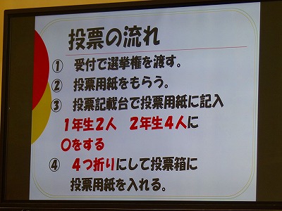 19日(木)の午後、生徒会役員選挙にともない立会演説会を行いました。推薦人と立候補者がそれぞれに演説をしましたが、堂々とした態度で発表できていました。特に立候補者の人たちは、公約実現のために具体的にどんなことに取り組みたいのか、その思いを真剣に述べていました。演説会終了後、投票に入りました。記載台や投票箱などを綾町からお借りして、実際の選挙に近い形で行いました。今回の選挙のために、事前の様々な準備を初め、当日の運営、開票作業に至るまで力を注いでくれた選挙管理委員会の皆さんに感謝します。ありがとうございました。