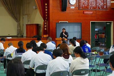 31日(金)の午後、修学旅行説明会がありました。旅行業者の担当の方から、行程や保険などの説明、学校からは、しおりをもとに、準備物や健康管理などについての説明が行われました。修学旅行は12月7日(日)~9日(火)の2泊3日の日程で、京都・奈良・大阪に行きます。旅行まで残り1か月と少しになってきました。当日を元気に迎えるためにも、体調管理には万全を期してほしいと思います。