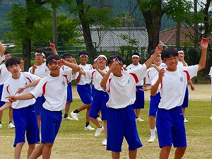 15日(水)は、体育大会の予行練習を行いました。天気も、雲が多かったため、そこまでは熱く感じられませんでした。エール交換や、徒競走、団技やリレー、ダンスなど一通り練習しました。また、大会を支える競技役員の人たちも、自分たちの仕事に責任をもって取り組んでいました。画像から生徒たちの意気込み、気迫が伝わってきます。18日(土)の大会本番が楽しみです。保護者や地域の皆様、どうぞ楽しみにされておいてください。