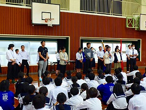 30日(火)の放課後、今年度になって初めての部活動生集会がありました。1年生が入部し、どの部活動、社会体育競技とも活動がスタートしています。第1回目の集会では、担当の先生から部活動に取り組む目的や、部活動生として心がけておいてほしいことなどが話されました。連休後半は、大会や練習試合が計画されているところもあります。天気が続くと良いですね。