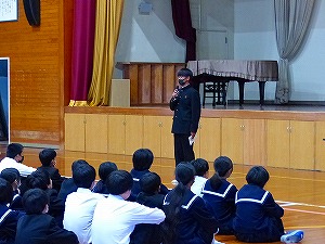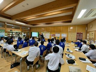 24日(金)の5校時、交通安全教室が行われました。講師には西都自動車学校から3名の先生がお見えになられました。特に自転車の安全な乗り方についてお話がありました。講話の途中にクイズもあり、楽しみながら自転車の乗り方などについて学ぶことができました。宮崎県は、ヘルメットの着用率が九州で最も低く、全国平均の半分ほどであるとの話もありました。改めて着用に向け、自分の命を守ることを最優先に考えた行動をとりたいものです。その先に待っている危険を予測することの大切さを強く感じました。講師の皆様、分かりやすく講話をしていただき、ありがとうございました。