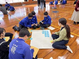 11月8日(水)に町議会議員の文教委員会の方々が学校訪問されました。給食時間は3年1組の生徒とランチミーティングを行いました。
