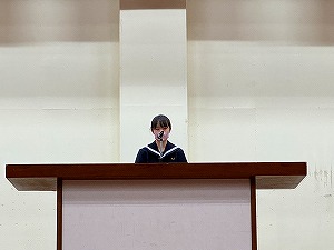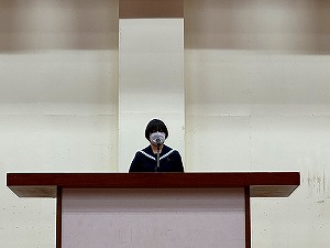 22日(水)の午後、1年生の学年集会が開かれました。各学級で代表となった、国語の授業で取り組んだ詩の朗読を発表しました。詩の内容に応じ、声に強弱をつけたりジェスチャーを交えたりするなど、工夫が見られました。温かな雰囲気の中での発表会となりました。最後に、学年の先生から体育大会を振り返っての話があり、次の目標に向けてみんなで頑張っていく気持ちを高めていけた集会となったようです。