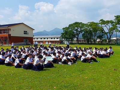 4日(水)の清掃時間に、地震を想定した予告無しの避難訓練を行いました。緊急地震速報が流れると、生徒たちは身の安全を確保するため、机の下などに入りました。その後は、放送の指示でグラウンドに避難しました。いつ、どこで起きるか分からない自然災害に遭遇したとき、自分で考えて判断し、命を守る行動ができる人になってほしいという目的で訓練しました。冷静に避難できていましたが、今回の訓練を通して課題も見えてきたので、今後の避難の在り方について最善の方策を立てていきます。