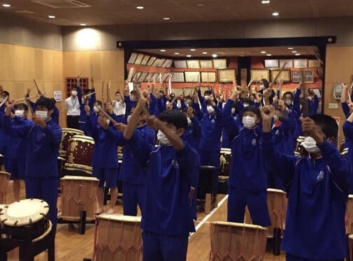 宮崎市太鼓研修センターでの和太鼓体験の様子です。