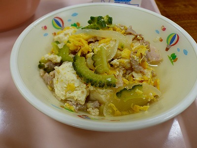 12日(金)の給食は、沖縄県の郷土料理「ゴーヤチャンプルー」でした。ゴーヤの苦さを感じさせない巧みな味付けで、大変おいしくいただきました。もずくスープも栄養満点で、この暑さを乗り切るのにふさわしいメニューになっていました。給食に関わっていただいているすべての皆様に感謝します。いつもありがとうございます。