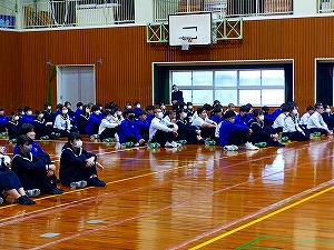 15日(月)の6校時、新入生歓迎行事がありました。まず、生徒会役員から、ユネスコスクールとしての綾中学校の取組の一端が紹介されました。次に、事前に収録しておいた動画による部活動紹介がありました。最後は、〇✕クイズでした。内容は、綾小、綾中についての知識や、先生方のことについてなど、問題に工夫が見られました。ときに笑いもあり、和やかな雰囲気の中での歓迎行事となりました。1年生の皆さんも、学校のことなどを知る良い機会になったことと思います。企画運営に携わった生徒会の皆さん、ありがとうございました。