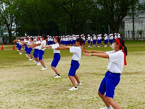 17日(金)は、朝から爽やかな日差しが注ぐ中、3、4校時に体育大会に向けた最後の練習を行いました。15日の予行練習で課題が残ったところを中心に練習して、最後の確認をしたところです。午後は、準備や役員の最後の確認をして、明日の本番に備えます。五月の青空が映えています。とってもいい青空です。