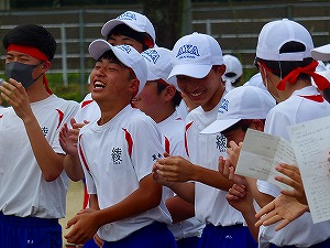 24日(金)の午後、地区中体連の激励会がありました。大会に出場する部活動や社会体育の競技ごとに、大会に挑むにあたっての決意が堂々とした態度で発表されました。その後、生徒会代表生徒及び学校長から激励の言葉が述べられました。そして、選手を代表して野球部3年の郡山和真主将から、最後の大会にかける思いをこめた選手宣誓がなされ、士気を高めることができていました。大会は、6月1日(土)の女子ソフトテニス競技をスタートに始まります。ほとんどの競技は、6月8日(土)~10日(月)となっています。保護者、地域の皆様方のご声援をよろしくお願いします。