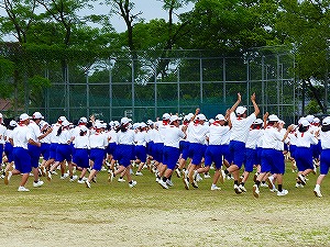 8日(水)の5校時、初めての体育大会全体練習がありました。実行委員会の皆さんから練習内容などの説明があり、初日は開閉会式を中心に練習しました。最後は各団に分かれ、気持ちを一つにさせてこれからの練習に取り組んでいくことを確かめ合いました。天気にも恵まれて何よりです。