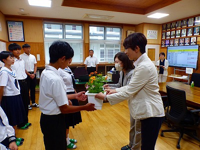 6日(木)の午後、「人権の花」運動における苗等の贈呈式がありました。綾町人権擁護委員の方による講話のあと、苗と立て看板が贈呈されました。そして代表の生徒から、花を育てることを通して命の大切さを実感し、思いやりの心をもって行動していくことの決意が述べられました。これから、大切に育てていきたいと思います。参加をしていただいた皆様、ありがとうございました。