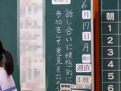 第1回目の定期テストが無事に終わりました。テスト明けの28日(金)の授業では、答案が返却されていた教科もあったようです。点数も気になったことと思いますが、間違っていたところの復習をして、次につなげてほしいと思います。今日の目標にも注目です。