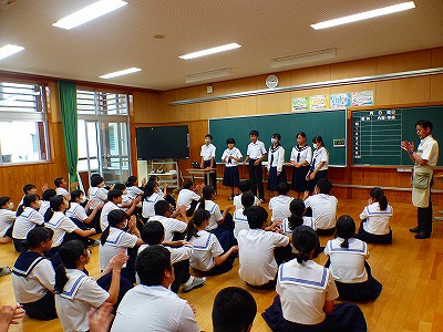 10月がスタートしました。朝夕の涼しさは心地よいですが、日中はまだ30度を超える暑さが続いています。秋の深まりに期待したいところです。現在、各学年では、学習発表会(10月18日・金)のときの学年合唱発表に向けて、練習が本格的に始まっています。各教室から歌声が聞こえてくると秋を感じます。1年生の教室では、3つのパート分かれて練習に励んでいました。本番が楽しみです。