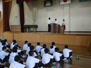 清掃後に、全校集会があり、九州大会の結果の表彰が行われました。