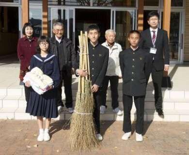 本日、高年者クラブの皆様からほうきとぞうきんをいただきました。