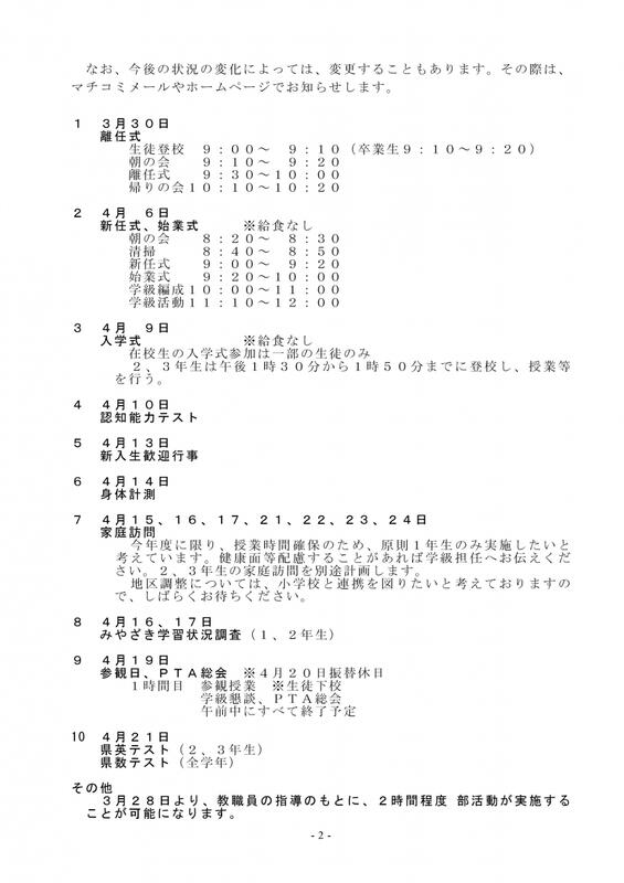 (この内容は3月19日にマチコミで1,2年生の保護者に配信したものです)