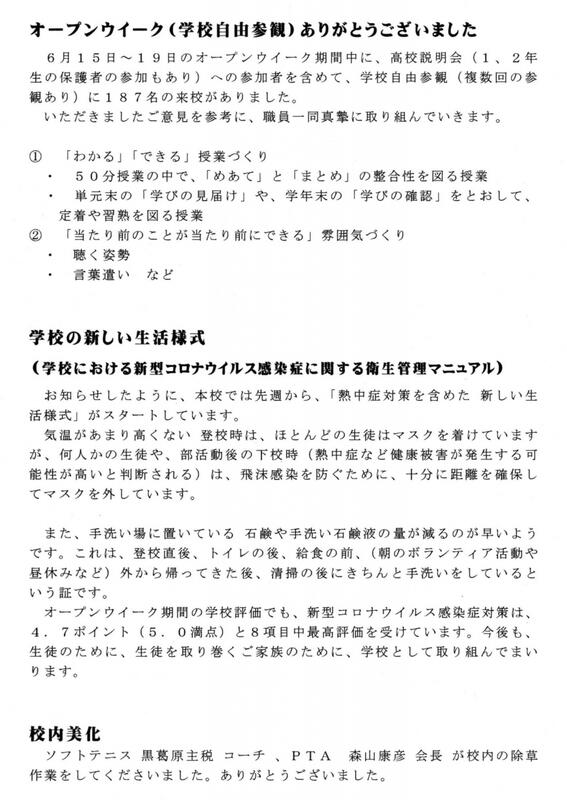 今週はオープンウィークです。コロナウィルス感染拡大防止の対策をとりつつ、子どもたちのようすを見ていただければと思います。