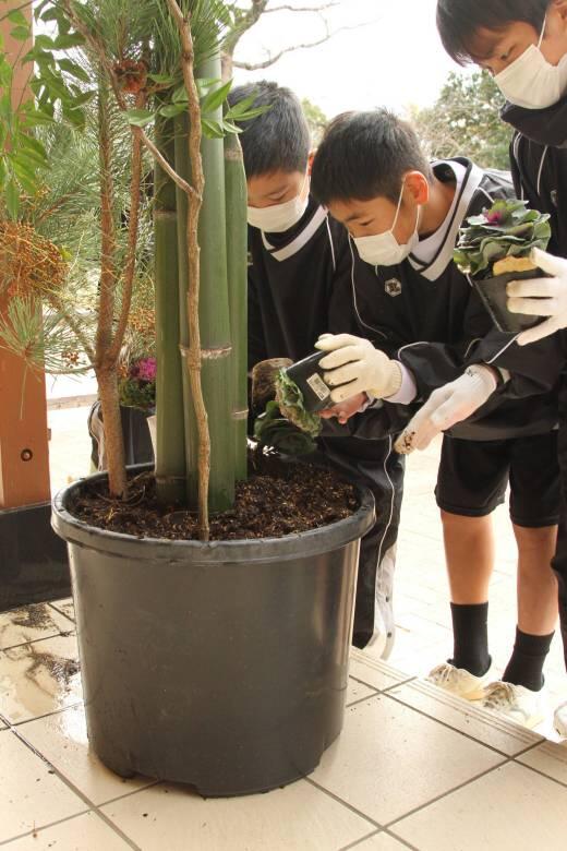 本日、PTA事業部の取り組みとして、門松づくりを行いました。