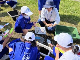 4月27日(木)に綾照葉樹林プロジェクトの活動で1年生がどんぐりの苗植えを行いました。今日から大切に育てていきたいと思います。