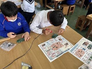 技術科のはんだ付けの授業の様子です。